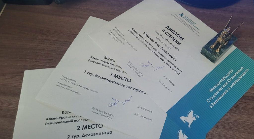 Корюков Егор, студент группы ЭУ-110 занял 1 место в туре Индивидуального тестирования, 2 место во Деловой игре в итоге получил Диплом III степени по секции "Учёт и анализ"!