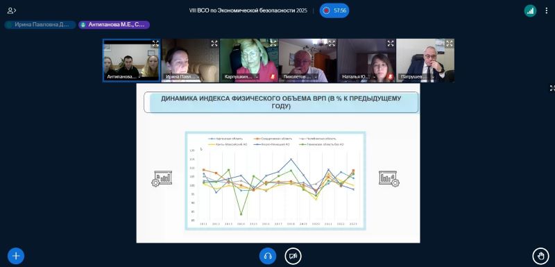 Честь нашей кафедры и университета с достоинством защищала команда студентов 5-го курса: Ангелина Воробей, Илья Лычагин и Дмитрий Штранц. На этапе научных докладов они представили глубокое и актуальное исследование на тему: «Оценка социально-экономического развития региона в контексте обеспечения его экономической безопасности (на примере УрФО)».