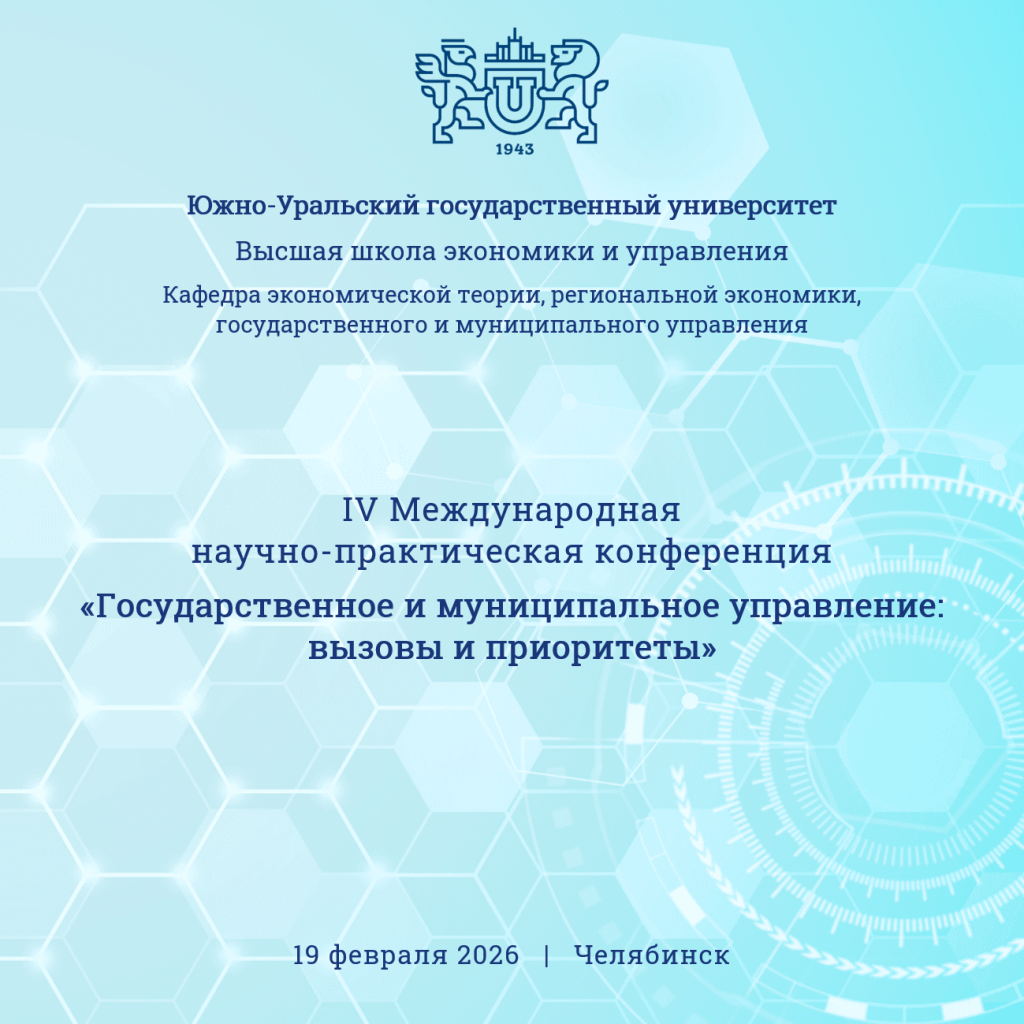 Кафедра экономической теории, региональной экономики, государственного и муниципального управления ВШЭУ ЮУрГУ приглашает преподавателей, научных сотрудников, аспирантов, представителей государственных и муниципальных органов власти, бизнеса и общественных организаций на ежегодную конференцию.