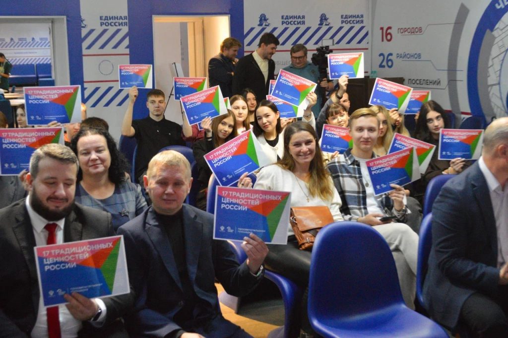 В Штабе общественной поддержки Единой России в рамках федерального образовательного проекта 25 ноября состоялось мероприятие, посвященное 17-ти традиционным ценностям, которые были утверждены Президентом Российской Федерации Владимиром Путиным в 2022 году. Эти ценности являются духовно нравственными ориентирами, на которых строятся базовые устои и традиции разных народов мира.